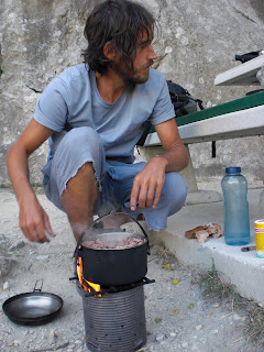 Sorry that I write so much about food but.. hehehe, check this out. Alby making a risotto with fresh calamares from the market (right at the place to climb, are we in heaven or what?!)